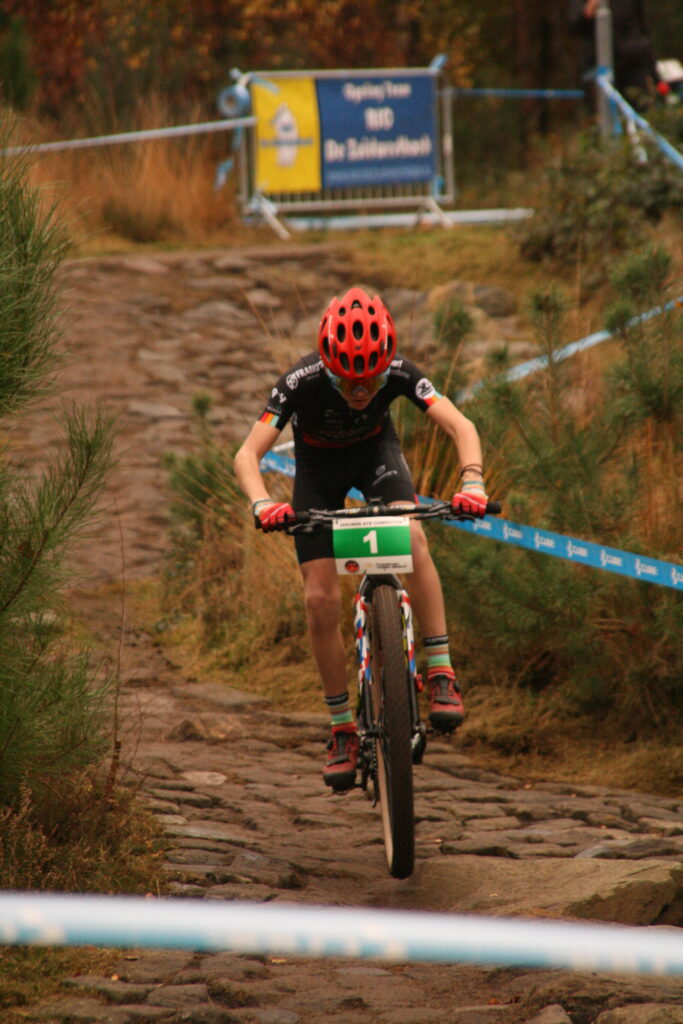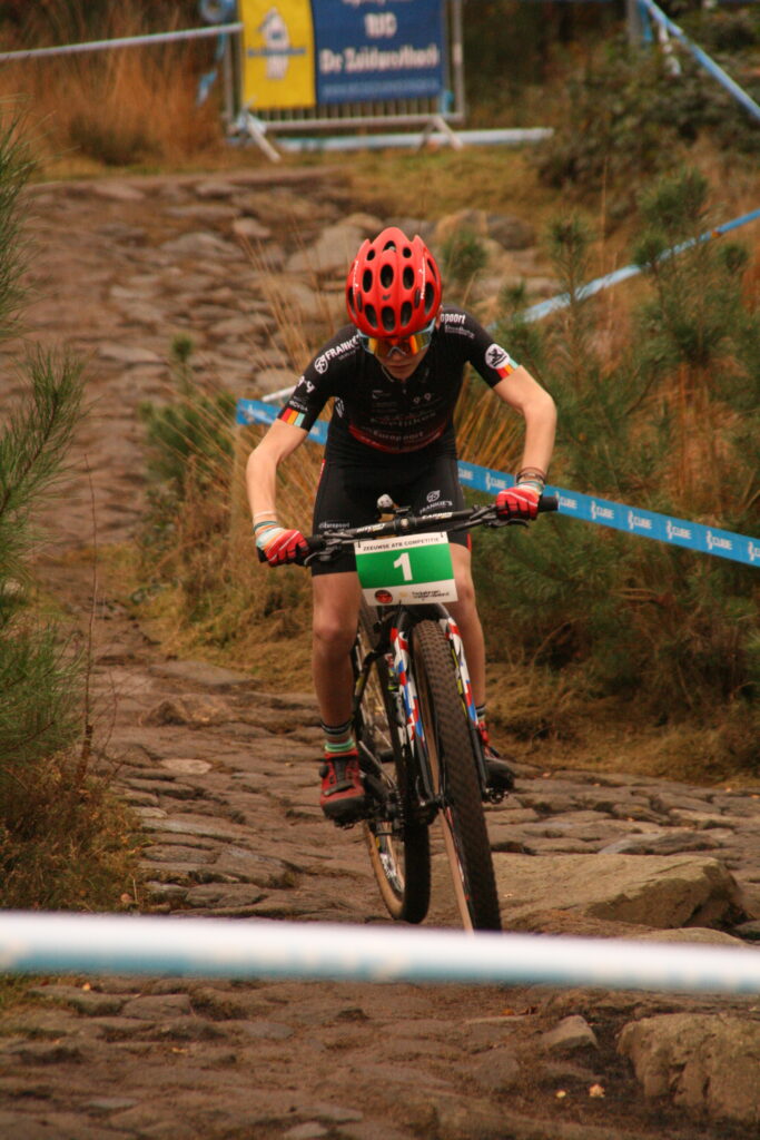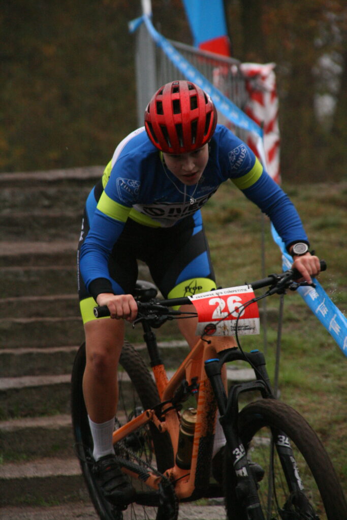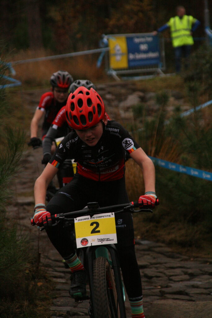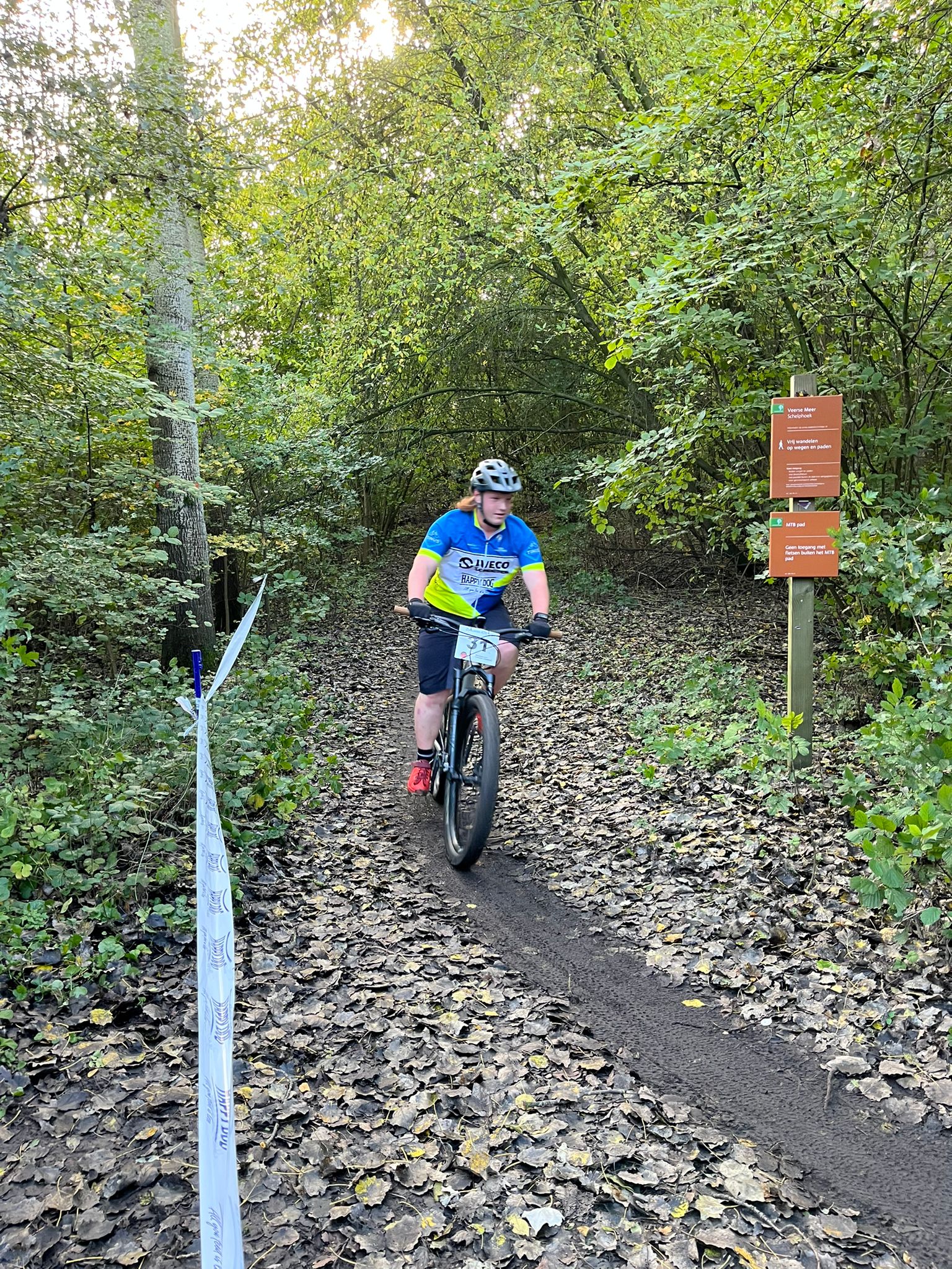 Eerste plaats Marie tijdens Cycling Vlaanderen MTB wedstrijd, Moerbeke-Waas (sept 2024)